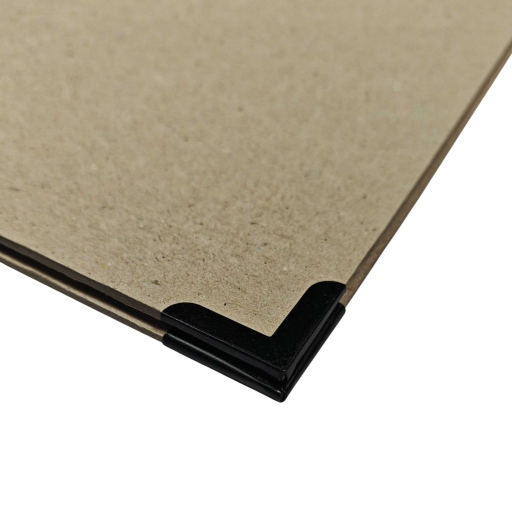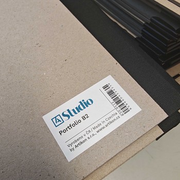 Desky ze šedé knihařské lepenky pro přenos výkresů, obrazů či papírů. Hřbet desek je tvořený z pevné černé textílie a umožňuje otevírání desek až do 360°. Rohy jsou chráněny knihařskými kovovými růžky. Otevírání a zavírání desek je rychlé a praktické díky pruženkám. Desky mohou být buď s chlopněmi, které zamezují vypadávání papírů menšího formátu, anebo bez chlopní. Vnitřní tloušťka desek cca 15mm. Větší formáty mají ucho pro lepší úchop.