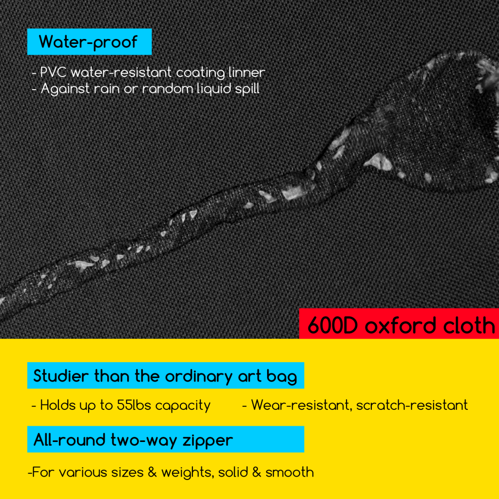 Meeden Oxford drawing board portfolio 91x121cmWaterproof sheets designed to carry papers, drawings, canvases and other flat objects. The MEEDEN portfolio is made of high quality 600D oxford fabric that is non-toxic, lightweight and durable, with a high load capacity. It is equipped waterproof inner layer that protects your work even in damp or wet environments. The outer double-stitched pocket is designed to store smaller items so you always have them close at hand. There are 4 different sizes available.