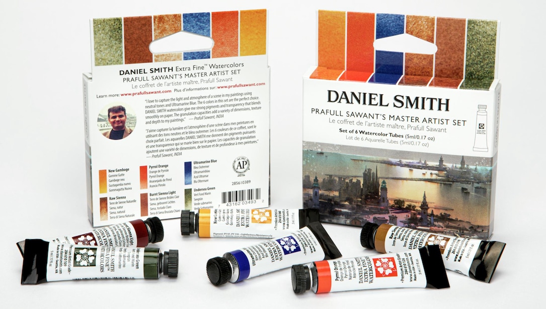 Set of watercolor paints DS 6x5ml Prafull Sawant Master setWatercolour paints Daniel Smith offer an extra wide range of shades, very high pigmentation and overall colour quality. Worldwide, these are some of the most popular watercolour paints, especially among professional artists. Each batch is thoroughly tested during production to achieve the correct lightness, purity and viscosity. Production has been taking place in Seattle, USA, since 1976 (watercolours themselves since 1993).