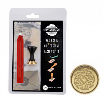 Pečetidlo s dřevěnou rukojetí a motivem propletence. Součástí balení je červený pečetící vosk s knotem pro jednoduchou aplikaci. Doporučujeme na dopisy a různé tvoření.