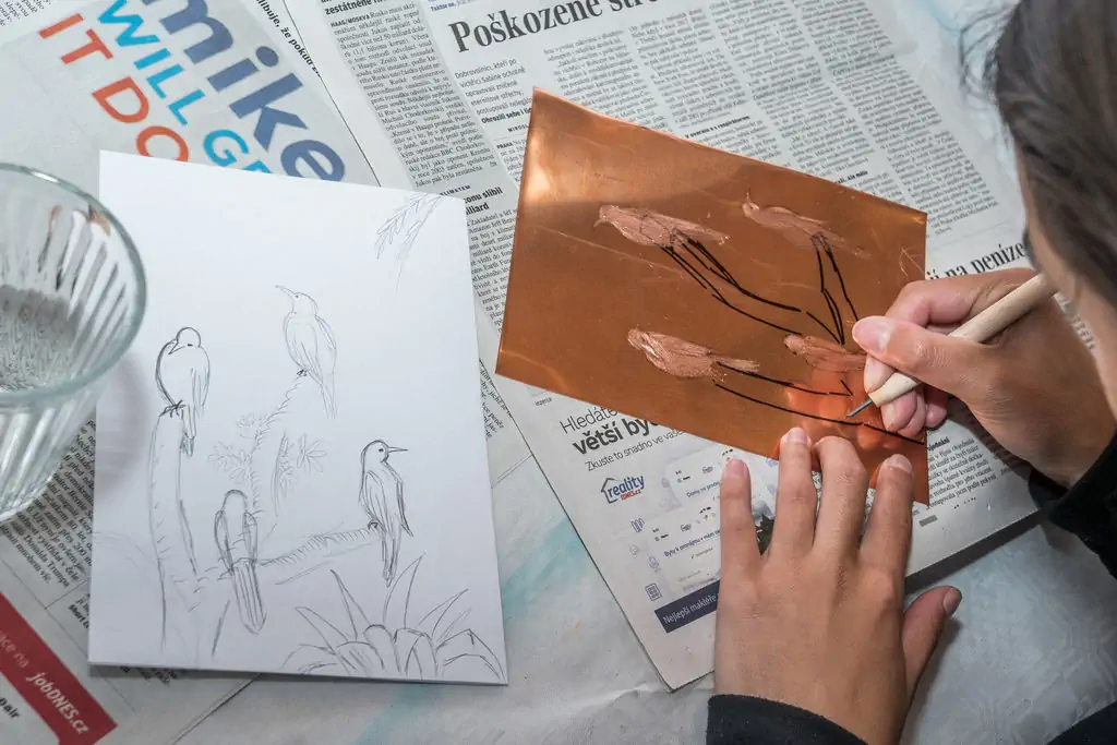 Práce se suchou jehlou už vyžaduje o něco více zručnosti, ale o to zajímavější bude výsledný tisk. Zatímco u linorytu si vystačíme s vodou ředitelnými barvami, pro suchou jehlu je vhodnější barva na olejové bázi. Co dalšího budete potřebovat se dočtete v tomto článku.
