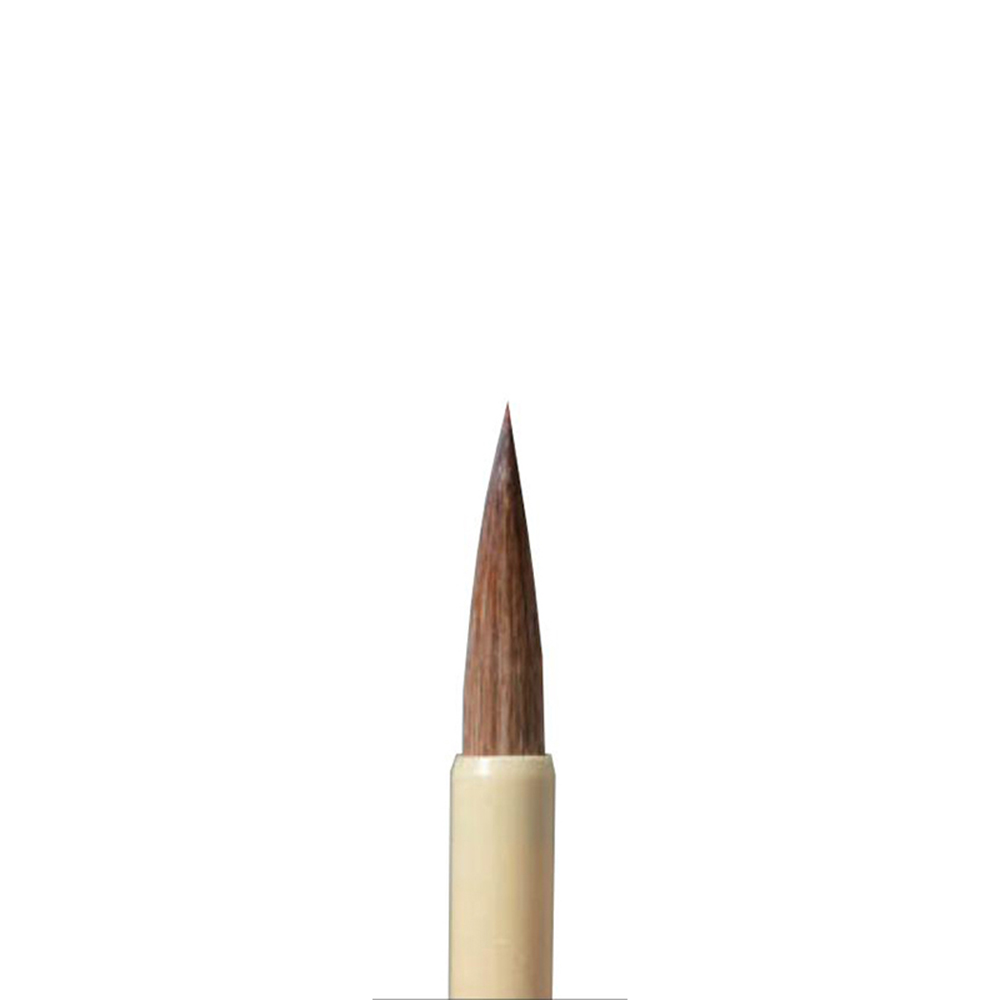 Tento štětec byl speciálně navržen pro začátečníky v kaligrafii. Spojuje měkkost ovčí vlny s výraznou elasticitou koňské žíně, což umožňuje nováčkům s jistotou proniknout do tajů kaligrafie. Navíc je štětec zevnitř vystužen syntetickými chlupy, což zajišťuje skvělé držení špičky pro detailní práci a zároveň umožňuje nabírat dostatek vody, barvy nebo inkoustu pro efektivní pokrytí velkých ploch. Tyto štětce vyrobené z mixu přírodních a syntetických štětin jsou tak ideální volbou pro práci s inkousty a akvarelem. Průměr štětce 7,5mm, celková délka 196mm.