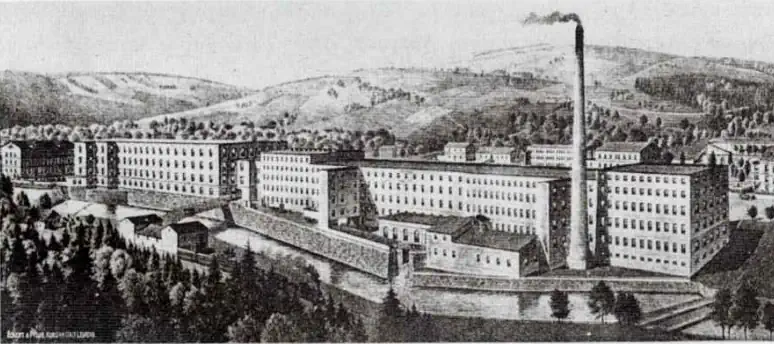 Historická fotografie z roku 1892 po přestavbě (v objektu se v té době nacházela tkalcovna)
