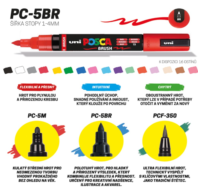 | Sada akrylových fixů Uni Posca Brush PC-5BR 16 ks | předchozí produkt | Sada akrylových fixů Uni Posca Brush PC-5BR 8ks základní barvy | další produkt | Sada akrylových markerů 3ks – černá a bílá |