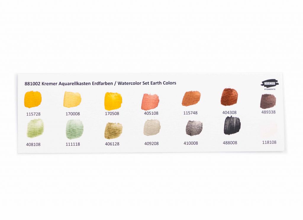 Akvarelové barvy Kremer 881002 – sada země 14 ksMistrovské akvarelové barvy ruční výroby. Jsou složeny z čistých jemněmletých pigmentů a kvalitního akvarelového pojiva. Vyrábí neměcká značka Kremer.