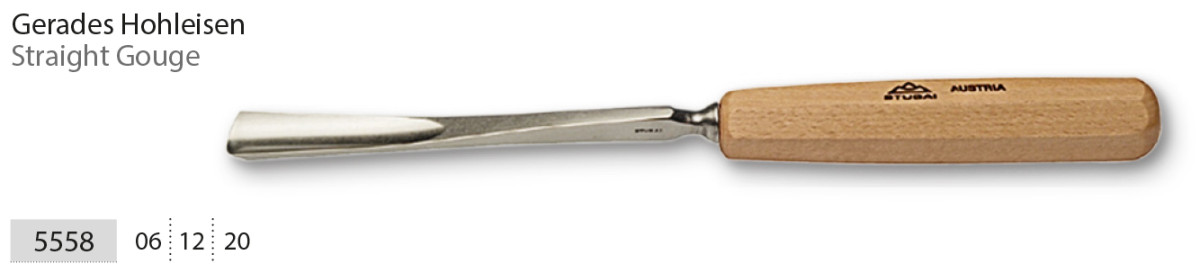 Dláto Stubai tvaru U 5558 – vyberte velikostŘezbářské dláto nejvyšší kvality od rakouského výrobce Stubai. Vyrábí se z kalené oceli exkluzivní řady č.55 o tvrdosti 58-60 HRC. Dláto je zasazeno do masivní dřevěné rukojeti o délce 125-145mm (dle velikosti), která je tvarována do osmihranu - dle výzkumu ideálního tvaru pro dláta. Zpracování ostří dláta probíhá výhradně ručně. Každé jedno dláto je po vyrobení testováno a kontrolováno. Nabízíme ve velikostech od 6mm do 20mm.
