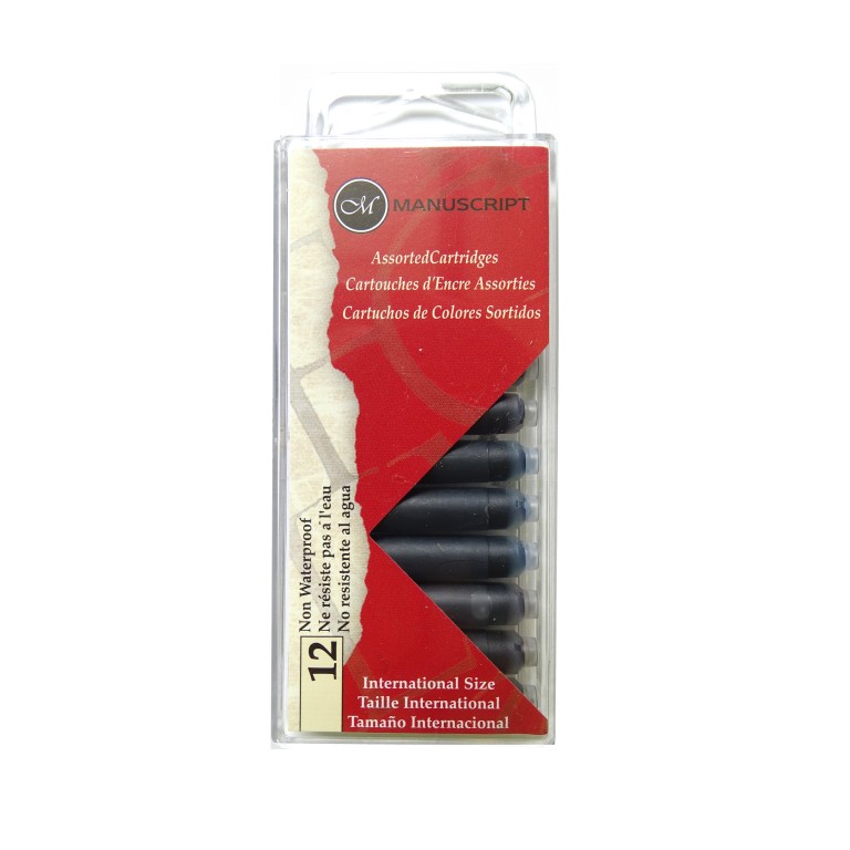 Barevné bombičky Manuscript 12 barevSet speciálních barevných bombiček pro náplňová pera standardních rozměrů.
