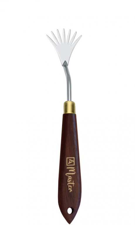 Malířská špachtle z nerezové oceli zasazená do lakované dřevěné rukojeti z bukového dřeva. Vhodná pro nanášení barvy na plátno, k vytváření struktur, 3D efektů, míchání apod. Široká škála tvarů pro různé použití. Pro olejové, akrylové, temperové a kvašové barvy.