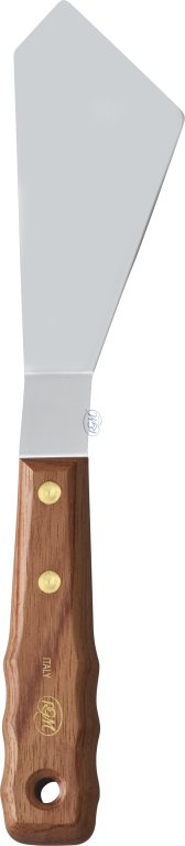 Malířská špachtle z nerezové oceli zasazená do lakované dřevěné rukojeti z bukového dřeva. Vhodná pro nanášení barvy na plátno, k vytváření struktur, 3D efektů, míchání apod. Široká škála tvarů pro různé použití. Pro olejové, akrylové, temperové a kvašové barvy.