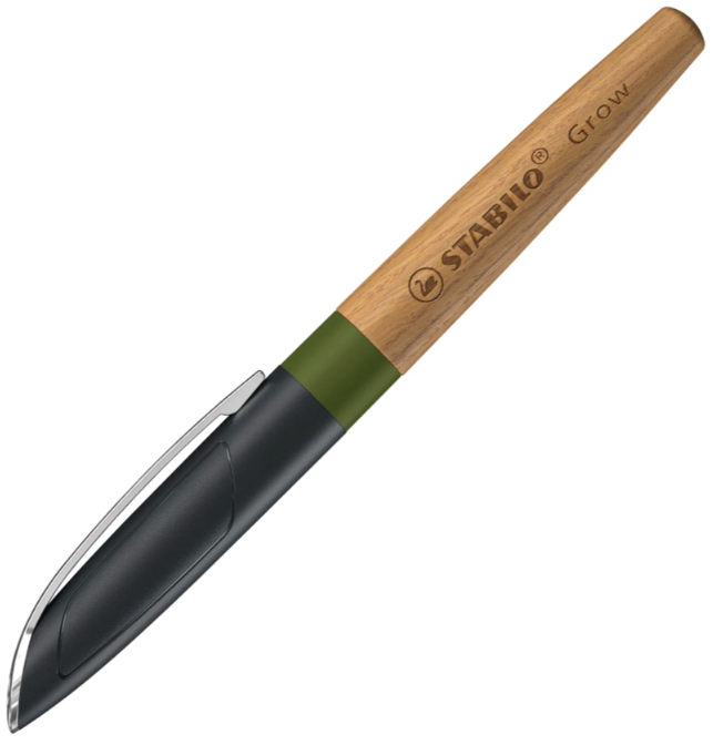 Plnicí pero Stabilo Grow – DubPlnicí pero STABILO Grow – hrot M, vč. bombičky s tělem z olejovaného certifikovaného dřeva z Německa. Ergonomická úchopová zóna zajišťuje pohodlné psaní. Kvalitní psací systém s nerezovým hrotem s iridiovou špičkou poskytuje plynulý tah a ochranu proti vytečení. Pero je doplnitelné standardními inkoustovými bombičkami a obsahuje bombičku s královsky modrým, zmizíkovatelným inkoustem. Uzávěr je vyroben z plastu částečně nahrazeného přírodními vlákny. Použité obnovitelné materiály pocházejí z odpadních produktů potravinářského a papírenského průmyslu.