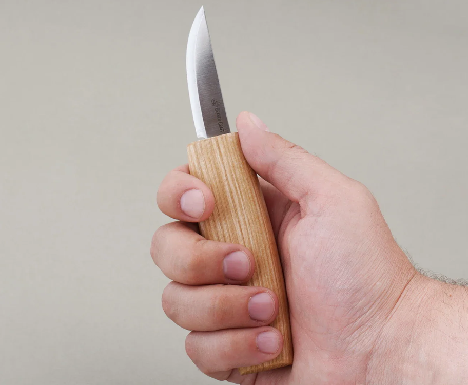 Malý řezbářský nůž Sloyd od ukrajinského výrobce BeaverCraft je univerzální nástroj pro řezbářství a práci se dřevem. Díky speciální čepeli Sloyd je ideální pro jak pro běžné řezání, tak i pro jemné detaily, tvarování, a další zpracování dřeva. Čepel je vyrobena z vysoce kvalitní uhlíkové oceli, kalené a precizně nabroušené, aby snadno zvládala měkké i tvrdé dřevo. Její ostří jako břitva zajišťuje hladké a přesné řezy. Rukojeť z jasanového dřeva je vyleštěna a ošetřena přírodním lněným olejem. Ergonomický design zajišťuje pohodlné držení pro praváky i leváky, a to i při delší práci.