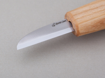 Malý řezbářský nůž Wood Carwing Bench Knife od ukrajinského výrobce BeaverCraft je univerzální nástroj pro řezbářství a práci se dřevem. Díky charakteristické zaoblené čepelí snadno prochází jak měkkým tak i tvrdým dřevem. Čepel je vyrobena z vysoce kvalitní uhlíkové oceli, kalené a precizně nabroušené, aby snadno zvládala měkké i tvrdé dřevo. Její ostří jako břitva zajišťuje hladké a přesné řezy. Rukojeť z jasanového dřeva je vyleštěna a ošetřena přírodním lněným olejem. Ergonomický design zajišťuje pohodlné držení pro praváky i leváky, a to i při delší práci.