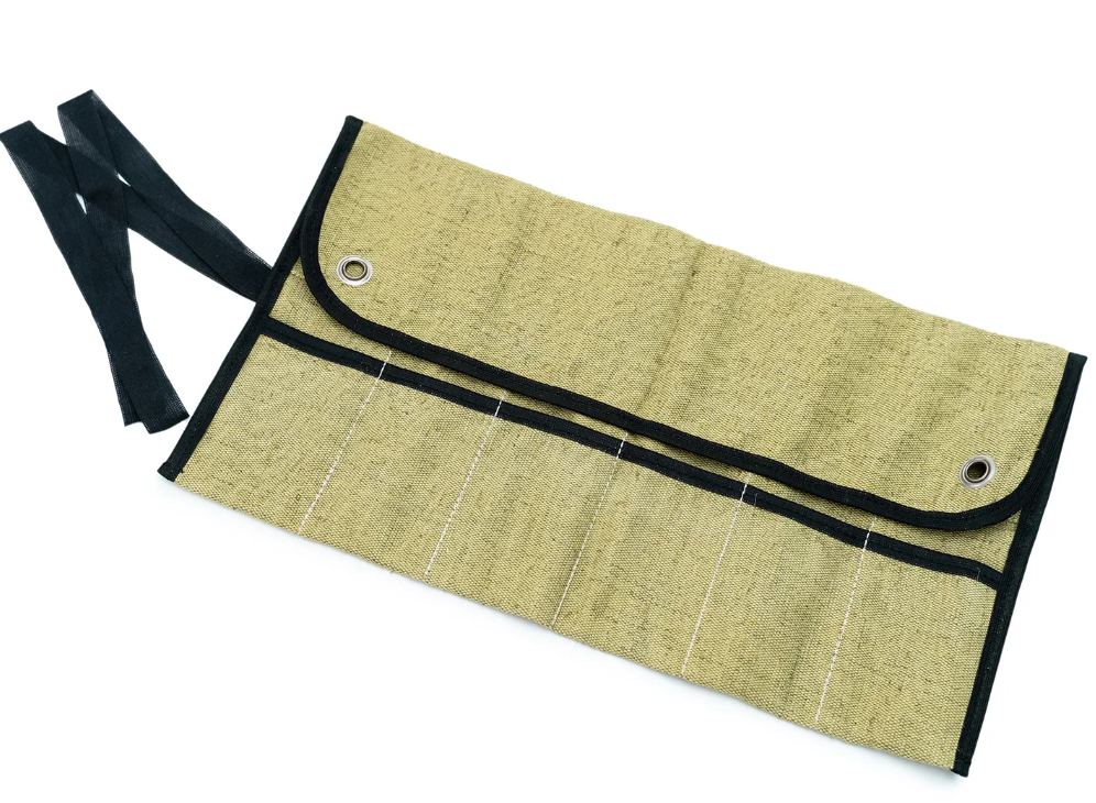 Rolovací pouzdro na řezbářské nože 6 Pocket Tool Roll BeaverCraftPlátěné rolovací pouzdro od ukrajinského výrobce Beaverkraft je ideální pro bezpečné uložení a přenášení řezbářských nožů, dlát, rydel a dalších nástrojů. Má 6 kapes o velikostí 70x95mm, Uzavírá se pomocí pevného popruhu. Díky kompaktním rozměrům (420 × 350 mm) se snadno vejde do batohu, dílenské zástěry nebo se dá přenášet v ruce. Otvory pro zavěšení umožňují umístit obal na zeď nebo polici, takže máte nářadí vždy po ruce a přehledně uspořádané.