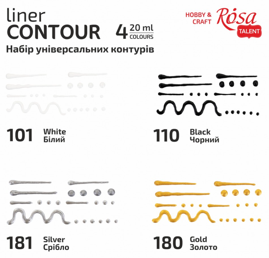 Sada univerzálních kontur 4x20ml – metalické a klasické barvy