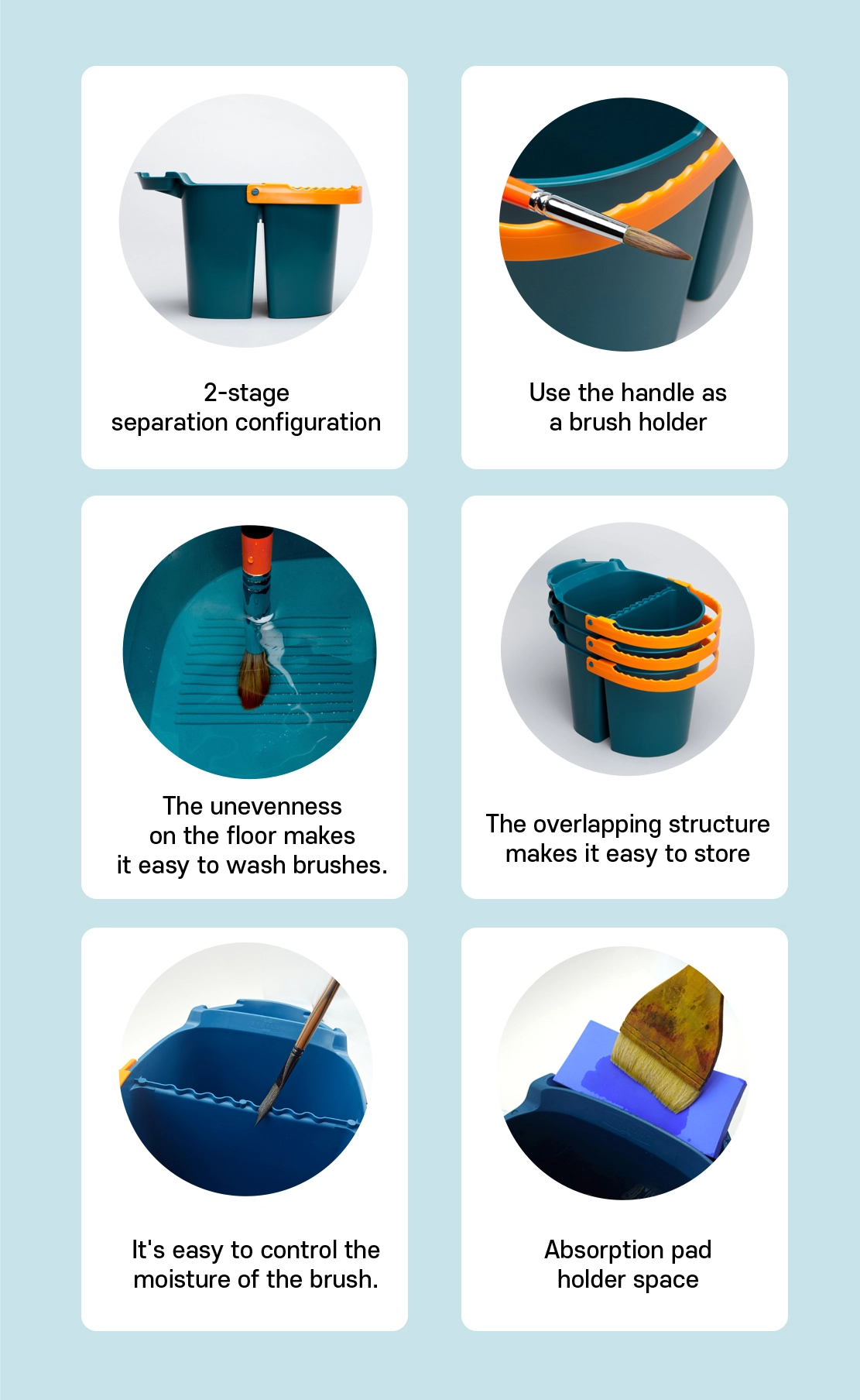 Veľké plastové vedro na vodu, obľúbené na maľovanie akvarelovými alebo akrylovými farbami. Vďaka svojmu objemu a 2 priehradkám zostane voda dlhšie čistá, takže nemusíte neustále odbiehať meniť vodu. Dno vedierka je zdrsnené, čo pomáha ľahšiemu čisteniu štetcov. Rukoväť slúži zároveň aj ako držiak štetcov a pomôcok.