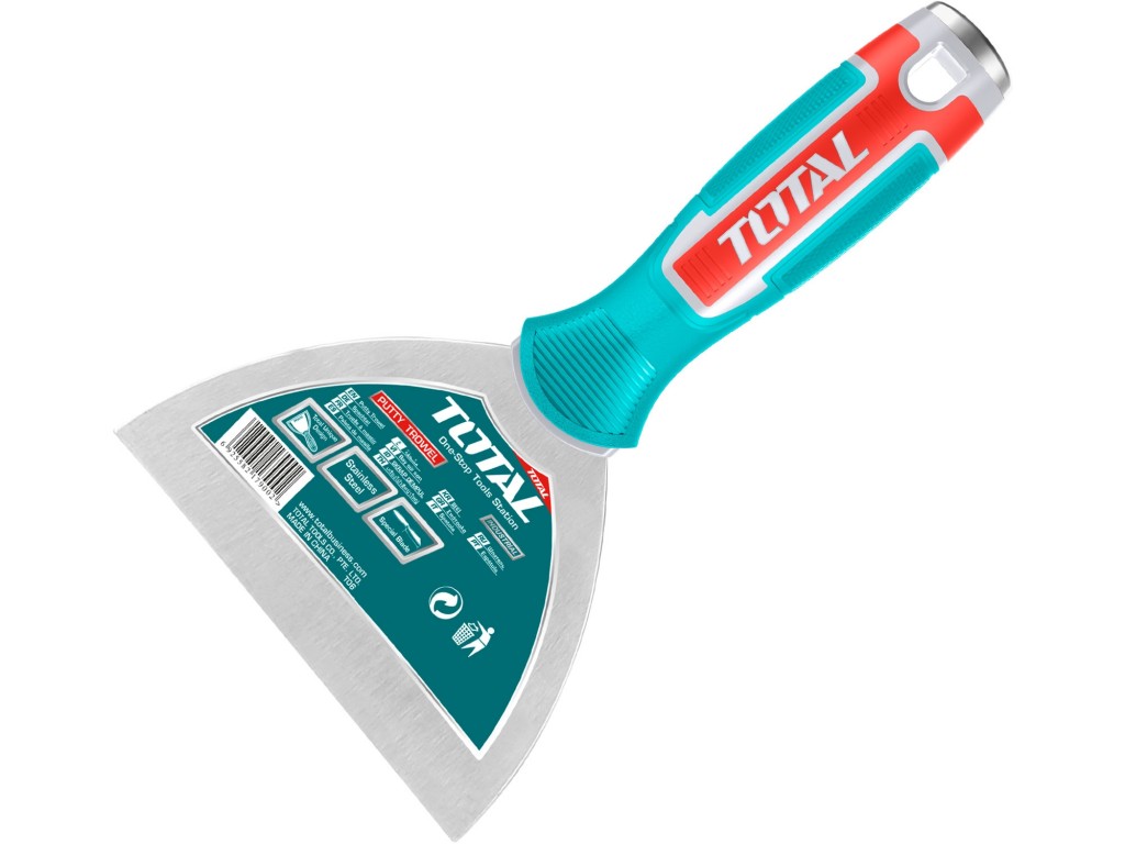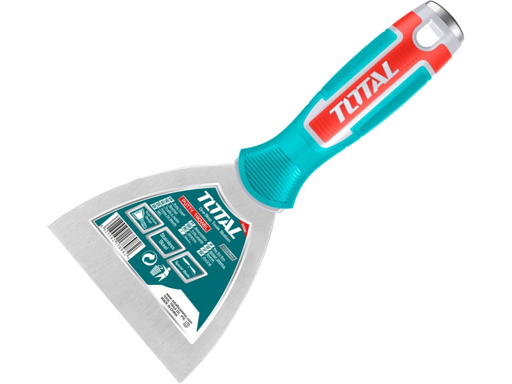 Špachtle z tepelně tvrzené nerezové oceli zasazena do protiskluzové patentované rukojeti má široké spektrum využití. Šířka 125mm