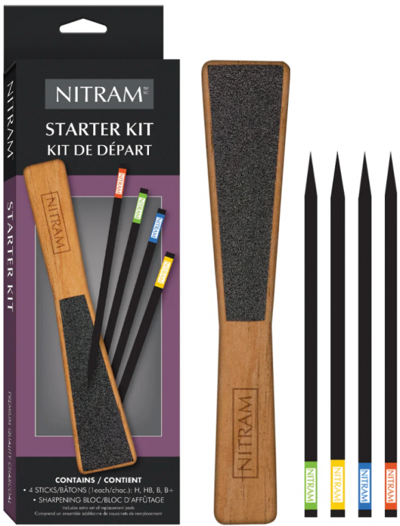 Umělecké uhly od kanadského výrobce Nitram patří k absolutní světové špičce a jsou preferovanou volbou profesionálních výtvarníků i prestižních akademií. Díky unikátnímu procesu karbonizace si dřevo zachovává svou buněčnou strukturu, což zajišťuje mimořádnou odolnost proti lámání a minimální prašnost při práci. Uhly Nitram se vyznačují konzistentní texturou, výbornou gumovatelností a schopností vytvořit širokou škálu tónů od jemných šedých až po hlubokou sametovou čerň. Na rozdíl od běžných přírodních uhlů je lze snadno brousit do velmi ostré špičky, což umožňuje precizní detailní kresbu i v té nejvyšší kvalitě.