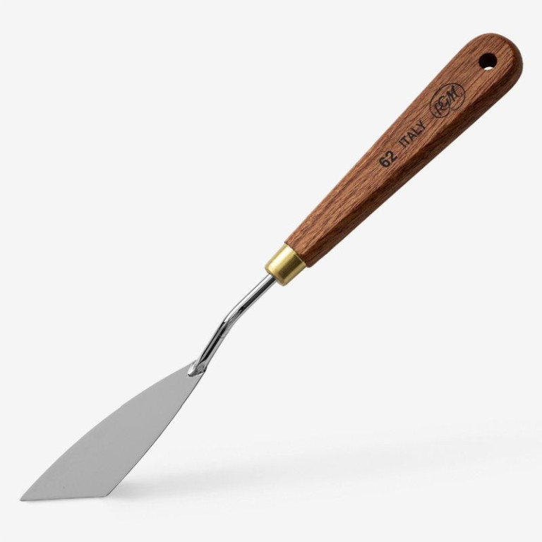 Malířská špachtle Italský styl – č. 12Malířské špachtle značky Phoenix z nerezové oceli a masivní dřevěné lakované rukojeti, pro použití při strukturované malbě, míchání, apod. Délka špachtlí je přibližně 20cm dle ocelové části. Vybírat můžete ze 12 různých tvarů a velikostí v naší nabídce.