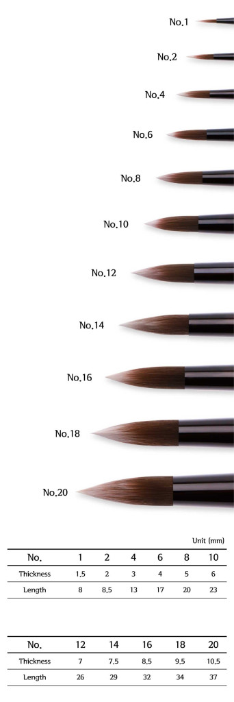 Kulatý štětec se syntetickým vlasem vhodný zejména pro akvarelové techniky. Špička štětce je přesná a soudržná, hodí se pro detailní práce a rovnoměrné vyjádření. Štětec dobře absorbuje vodu a je velmi pružný a neláme se. 25 cm dlouhá dřevěná rukojeť je velmi pohodlná a příjemná pro práci. Štětec doporučujeme začátečníkům v akvarelu a ilustrátorům, kteří ocení jeho přesnost a pružnost.